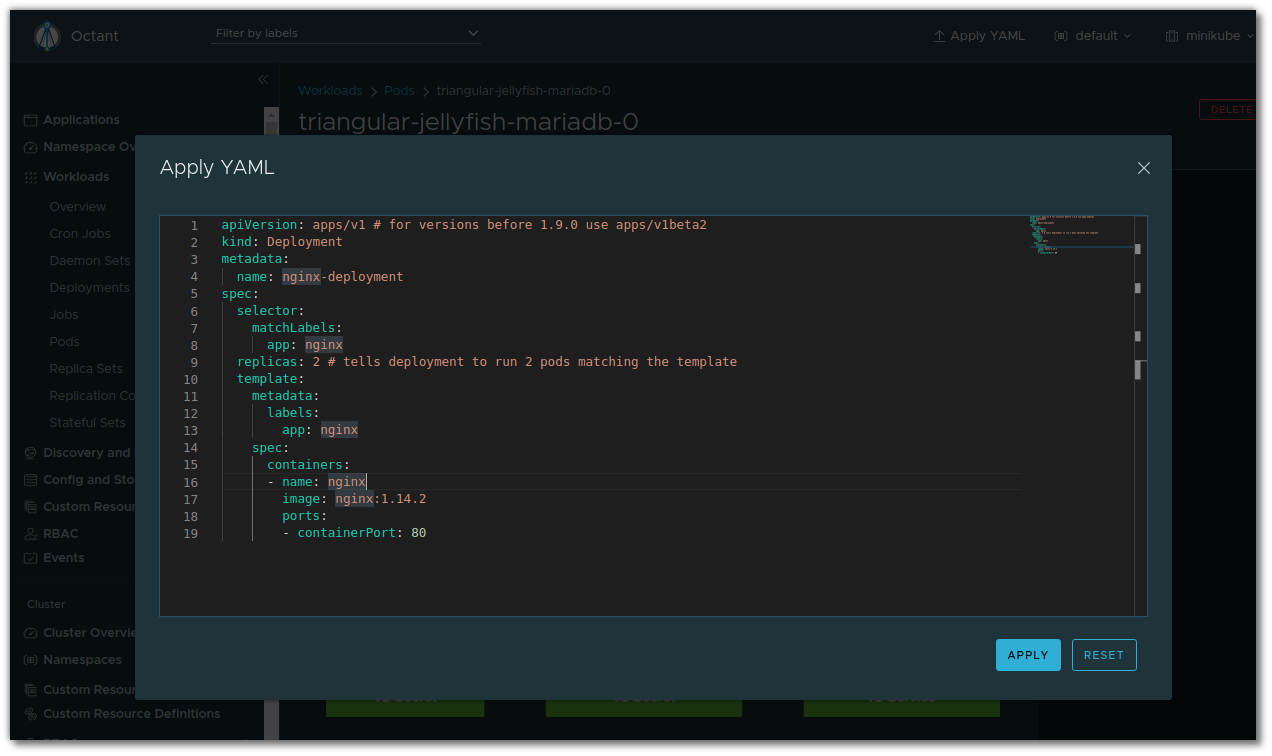 또한 octant가 동작될 환경에서 저장되어 있는 kubeconfig 파일을 참조하여 context부터 각종 resource를 불러오기 때문에 이에 대한 설정이 기존에 되어 있어야 한다. 즉, .kube/config 내에 필요한 context 정보가 사전에 추가되어 있어야 한다.