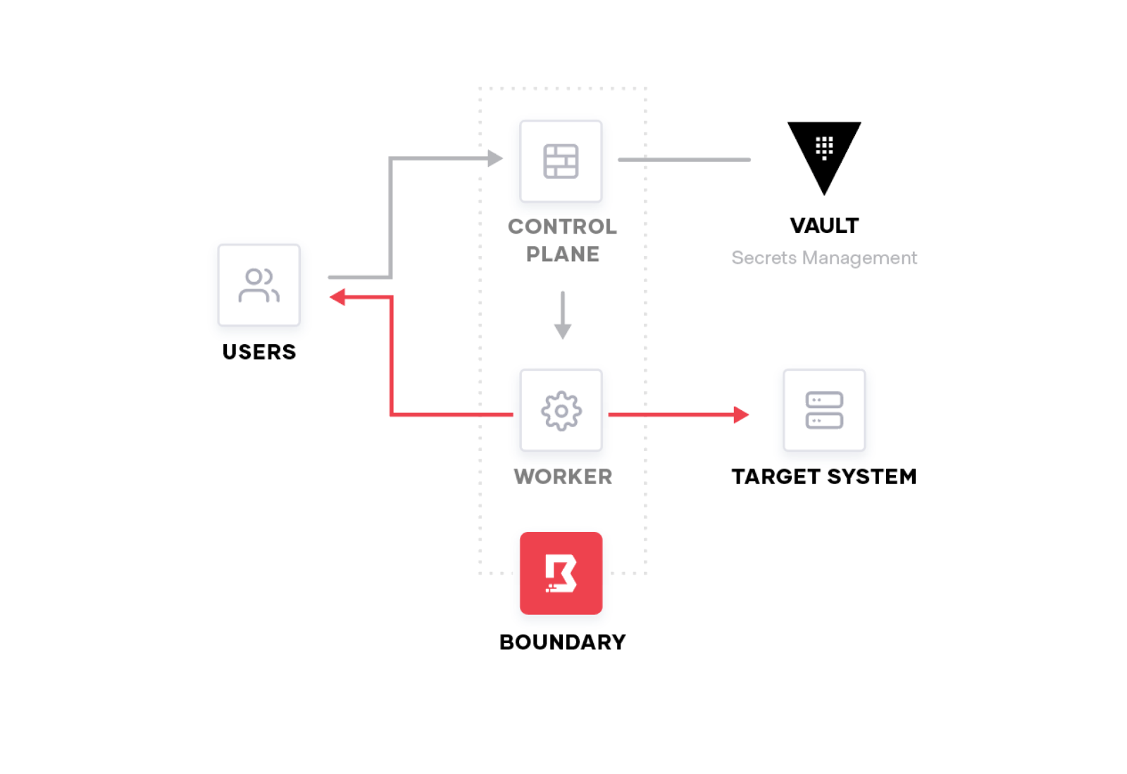 즉, Boundary를 통해 신뢰가능한 ID가 적당한 역할에 기반한 권한을 가지고 정당한 접근이 이루어질수 있도록 하여 기존의 복잡한(실제 많이 복잡한것은 아니지만) workflow를 단순화 시켜주는것에 초점을 맞추고 있는 도구(시스템)이라 볼수 있다.