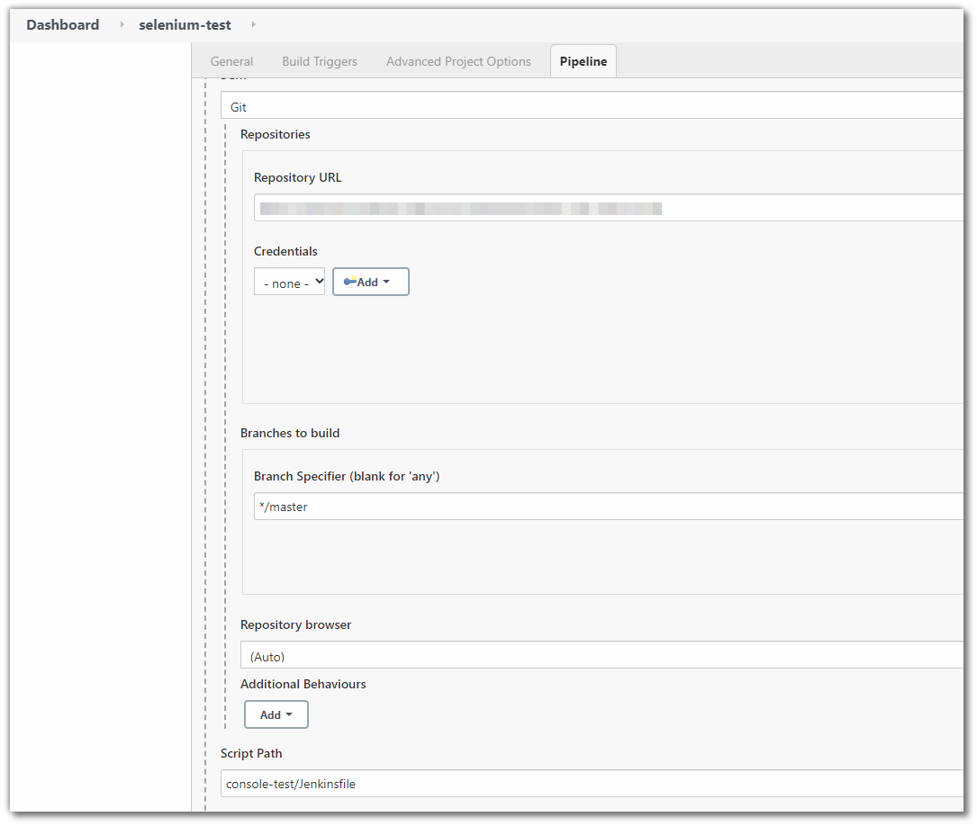 이후 아래와 같이 앞서 저장했던 git server의 repo 주소를 아래에 기입한다.