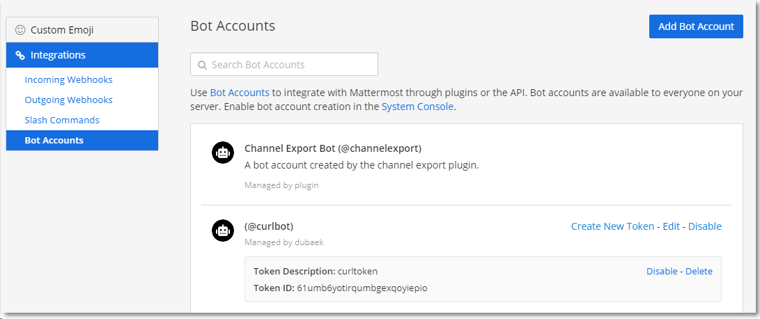 이제 생성된 Bot의 Token을 이용해 실제 메세지를 mattermost상에 출력해보자.