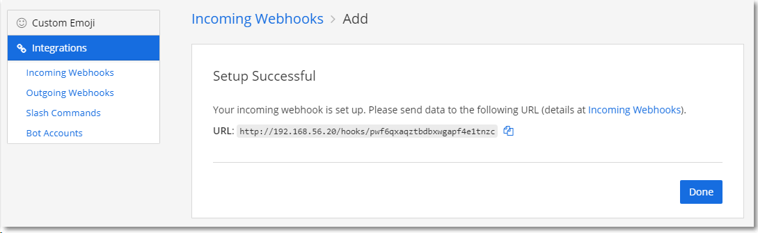 webhook 생성이 완료되면서 URL 링크가 제공되게 된다. 해당 URL을 통해 message를 전달할수 있다.