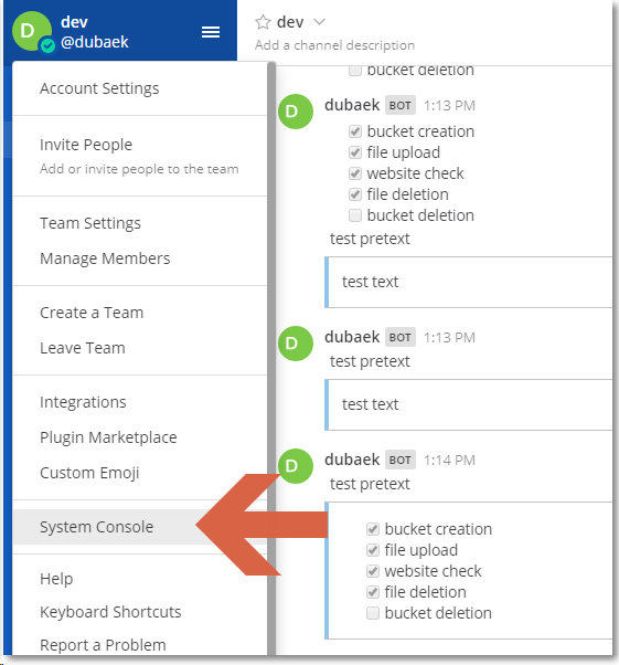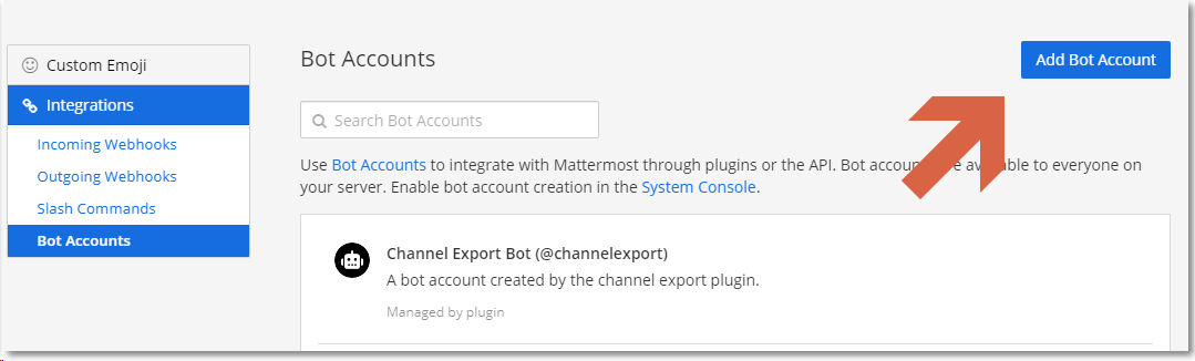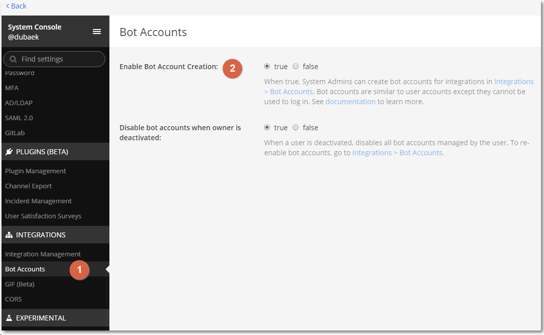 Bot 생성을 위해 system console에서 기본 설정을 변경해 준다.