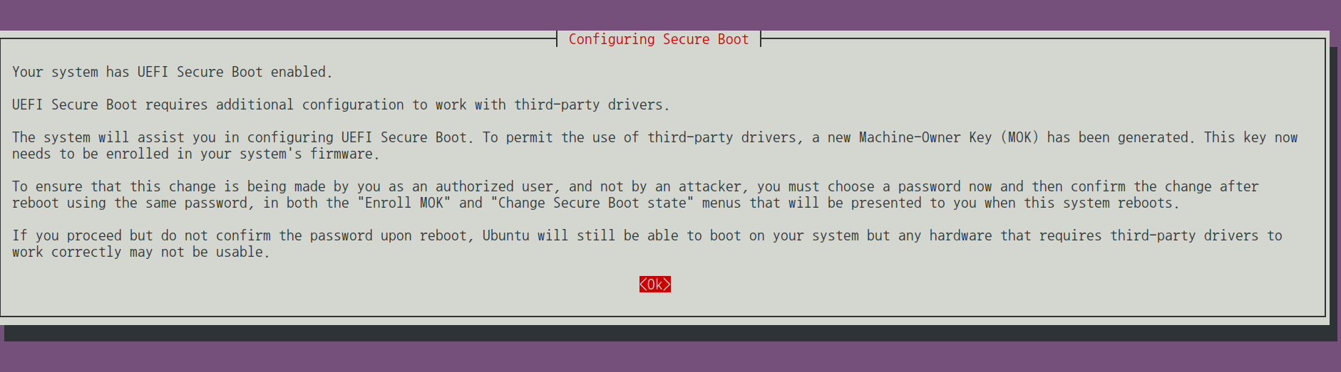 재부팅 후 UEFI Secure Boot 을 해제한 뒤에 vagrant up 수행시 정상적으로 provision 됨을 확인하였다.
