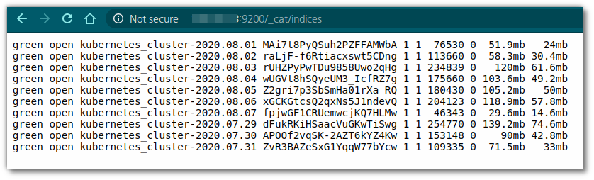 index name의 경우 fleunt-bit에서 다음과 같은 kubernetes_cluster-YYYY.MM.DD 형태로 남겨지도록 되어 있기에 해당 형태를