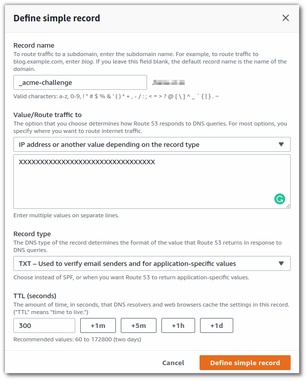 _acme-challenge.example.com with the following value: