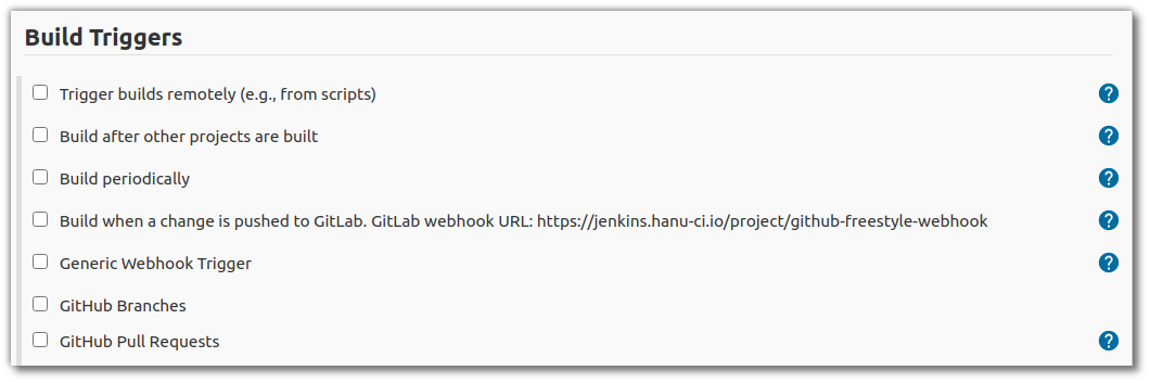 Generic webhook trigger plugin을 설치하게 되면 Jenkins Job에서 아래와 같은 Build Triggers에 Generic Webhook Trigger 항목을 확인할 수 있다.